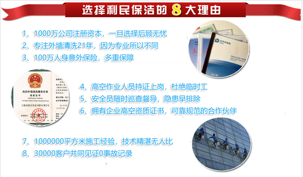 ![]() 利民,高空清潔行業(yè)的卓越領(lǐng)跑者。我們的外墻清洗業(yè)務包括:外墻清潔、外墻防水補漏、外墻涂料粉刷、LED樓體亮化工程高空安裝、外墻防水工程高空施工等系列高空作業(yè)項目,是物業(yè)公司、景觀工程公司、廣告公司、建筑、安裝公司、幕墻公司、各企事業(yè)單位等最佳高空作業(yè)服務專業(yè)供應商.專業(yè)安全高效,承包高空外墻清洗,.專業(yè)的施工團隊,所有人員均持證上崗,高空人員均購買100萬保險,21年1000000平方的外墻清洗經(jīng)驗,優(yōu)質(zhì)的服務..[詳細] 經(jīng)典案例更多 >